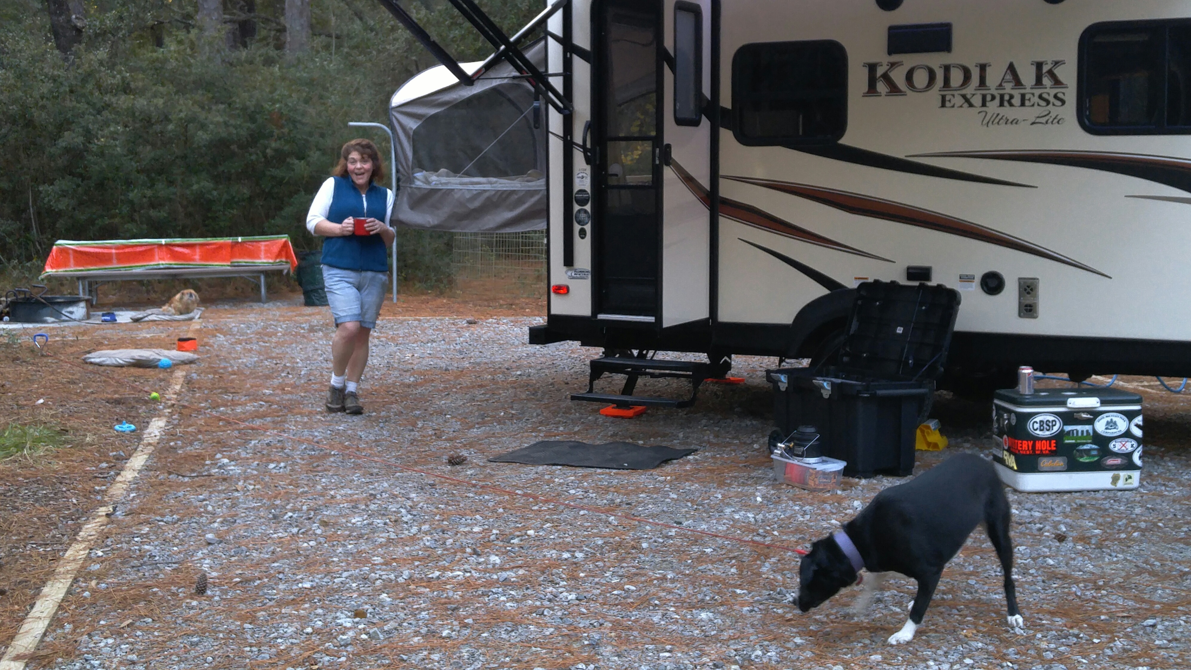 Maiden voyage... 1-night stay at Carolina Beach State Park, with both dogs! Got on the road about noon... so far, so good. (It's now 12:07pm.)