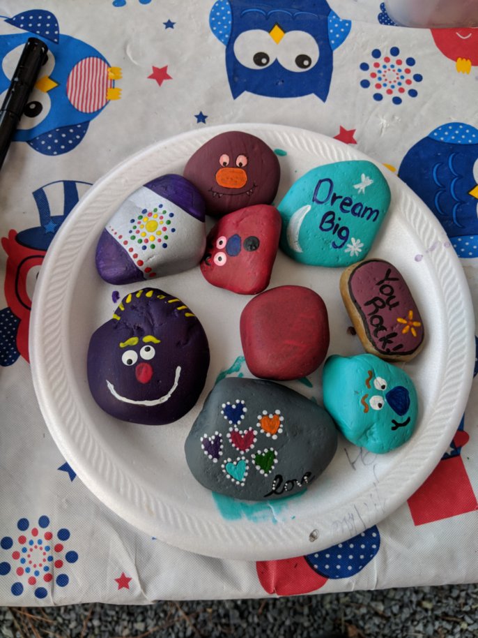 We told ghost stories, we hiked, we left painted rocks for the next campers to find, and we did some group-effort Mad Libs, one of which produced the phrase: "clapping your butt."