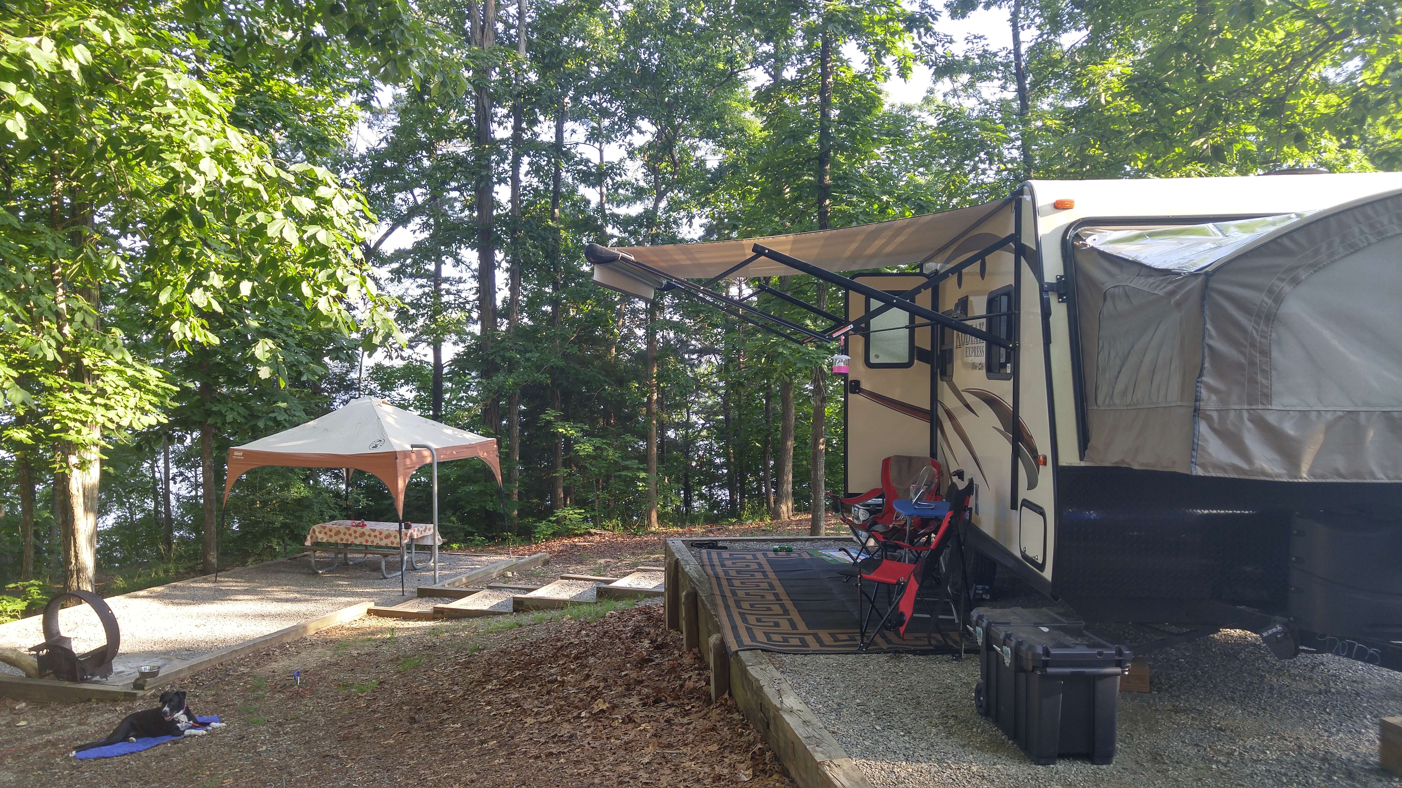 We hadn’t seen our friends Darci and Kyle (and April’s boyfriend Miles) in a long time. So what could be better than camping weekend at Occoneechee State Park (on the Virginia side of Kerr Lake)?