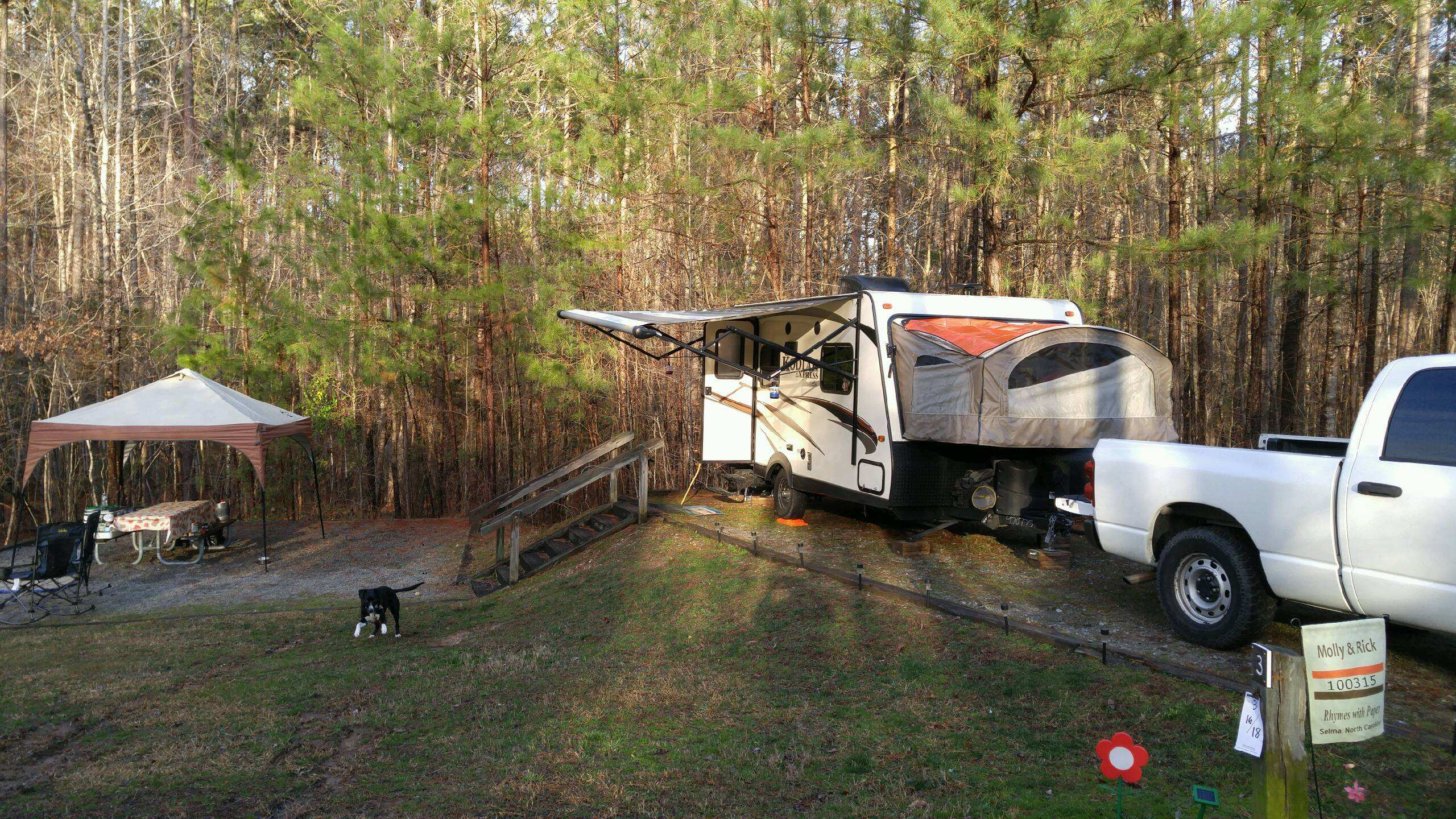 For our first trip of the season, we wanted a do over at Medoc Mountain State Park. Once again, it rained the entire weekend. Even though it was chilly, Roxy came through like a champ... we even managed some Dutch Oven cooking over the (soggy) campfire!
