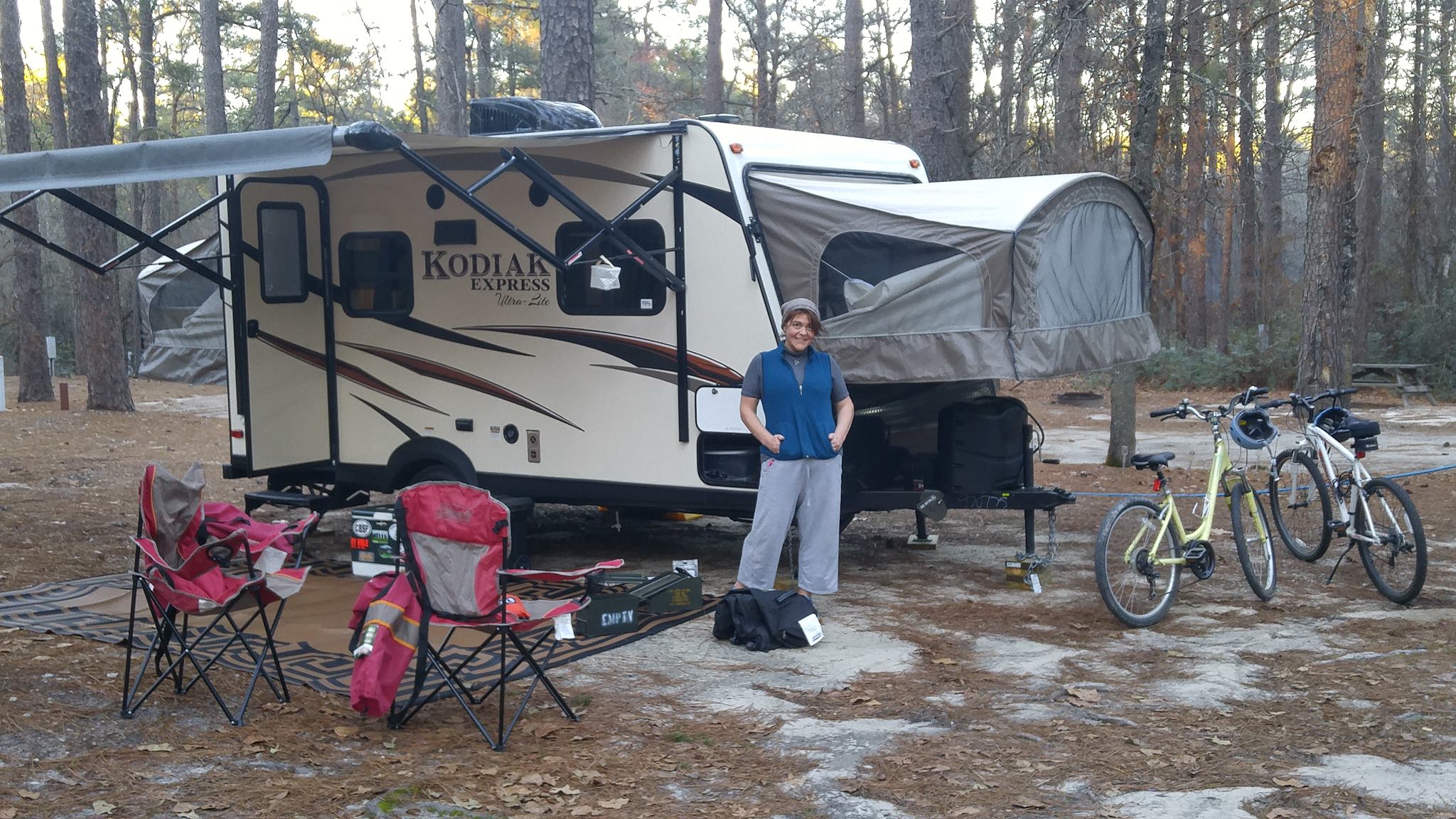 Our campsite (Sesquicentennial state Park) was a shallow, but fairly spacious pull-through which would have been ideal if it weren't for the fact that our next-site neighbors were the un-funnest grandparents in the world with their three, super-bored grandchildren. A tree had fallen along the backside of our site: