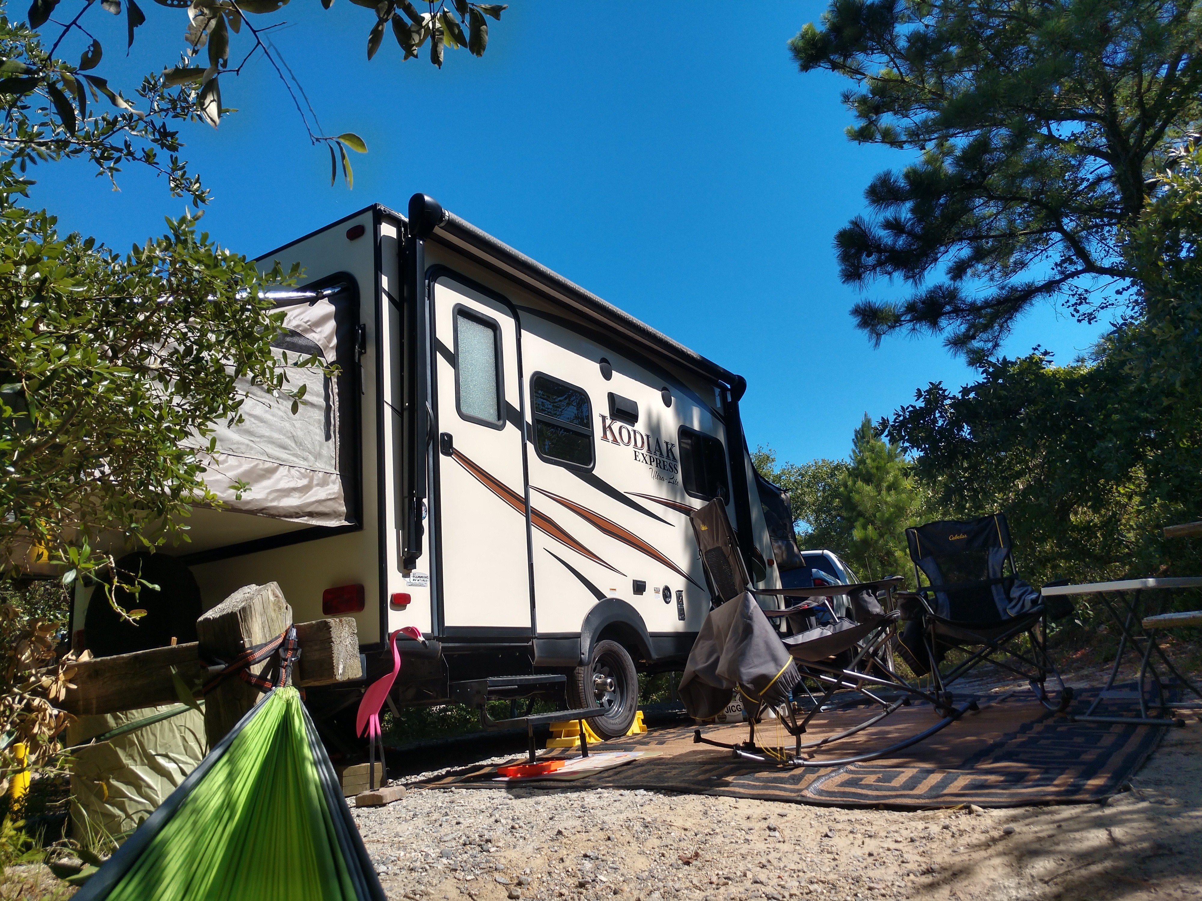It was a long trip — next time we drive more than 4 hours, we should plan on spending at least nights — but we had a beautiful spot (#170). Not only was the back-in perfect, but so was the weather. The daytime highs were in the mind 70s and nights were cool (too bad Rick forgot the sleeping bags).