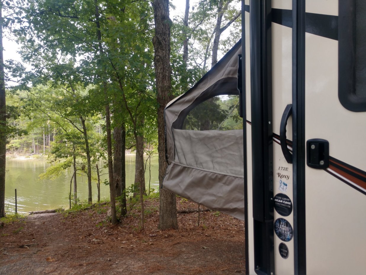 We arrived late Wednesday afternoon, set up Roxy, and began a whole lot of nothing! Dinner was gnocchi with chicken sausage — something new for us. We sat, enjoying the sunset and did very little else! Basically, the entire Thursday was spent relaxing. Rick spent some time in the water (on our raft, the SS Rhymes with Paper) but we really did little else, it was a very restful trip.